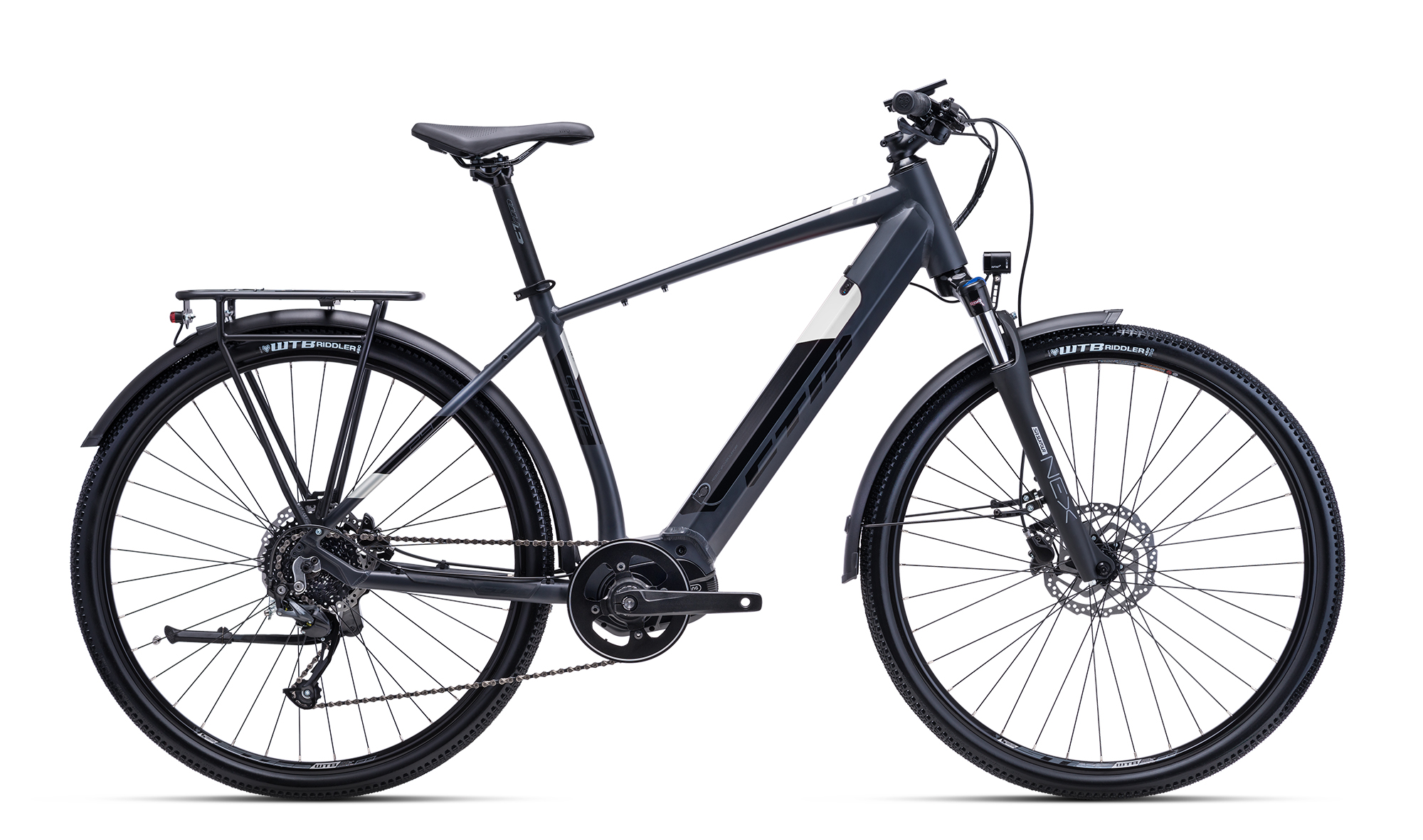 SENZE Man - pánsky crossový e-bike, ktorý je určený na klasickú cykloturistiku, no nezľakne sa ani ľahkého terénu. Pomocnou silou je elektromotor Bafang M420, ktorý je navrhnutý pre optimálny prenos sily pri šliapaní. Poskytuje výkon 250W a krútiaci moment až 80Nm. Dostatočnú zásobu energie na dlhé výlety zabezpečí batéria s článkami Samsung, ktorá má kapacitu 630Wh a je plne integrovaná v ráme bicykla. Úplne dobitie dosiahne už za cca. 5-6 hodín. Tento systém poskytuje dojazd 50-120km - podľa zvoleného stupňa podpory. V teréne nárazy stlmí odpružená vidlica SR Suntour NEX-E25 RL DS, o bezpečnosť sa starajú hydraulické brzdy Shimano MT200 a so všetkými druhmi nerovností si poradia odolné kolesá WTB STi23 s plášťami WTB Riddler. Verzia TREK je doplnená o blatníky, pevný zadný nosič a integrované osvetlenie napájané z batérie a ovládané priamo z cyklopočítača na riadidlách.